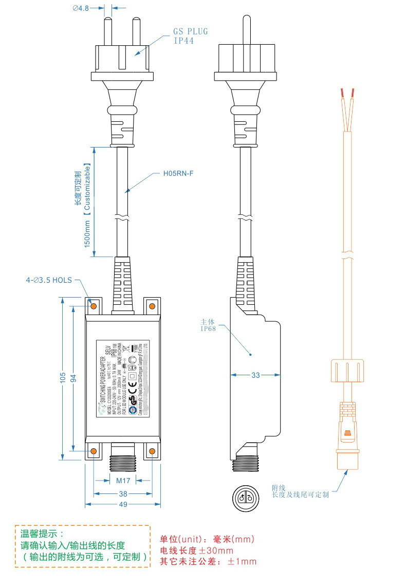 “XXX”=030-480,输出电压为DC3.0-48.0V,